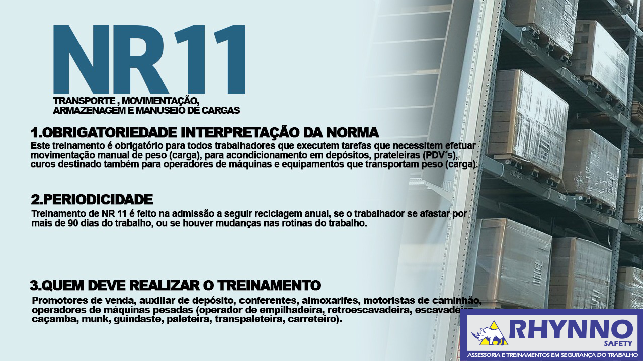 - Nr 11 norma regulamentadora (transporte, movimentação, armazenamento e manuseio de materiais).