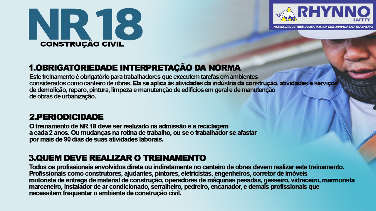 Segue alguns exemplos de quem deve fazer este treinamento de 8 horas; frentistas de postos de gasolina, trocador de óleo, devido a fazerem abastecimento e troca de óleo, mecânicos devido a utilizarem gasolina para limpar peças e utilizar óleo para lubrificar maquinas, pintor industrial e residencial pelo fato de utilizarem solventes para diluir tintas, soldadores devido a utilizar gases no processo de solda entre outros;